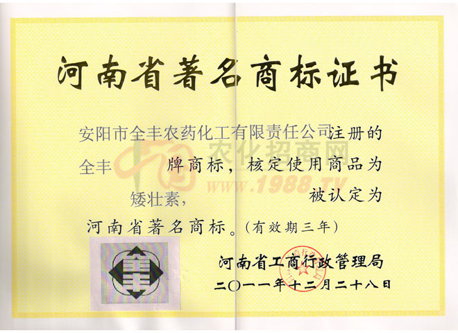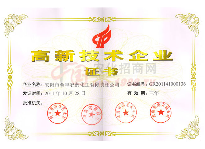安陽全豐生物科技有限公司于1997年成立,主要從事農藥產品的生產和經營,是國家定點農藥生產廠家,“矮壯素”產品行業(yè)標準起草單位。公司經過十年的艱苦發(fā)展歷程,已經發(fā)展成為集科研、原藥生產、復配加工、內外貿易于一體的大中型股份制企業(yè)。
