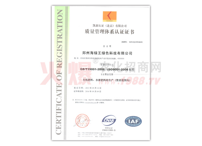 如今的海綠王,各個(gè)部門及各項(xiàng)規(guī)章制度均以完善,產(chǎn)品的生產(chǎn)也步入了規(guī)范化管理,起步雖晚,但成績喜人,海綠王被評(píng)為“中央電視臺(tái)AAA誠信企業(yè)”“河南衛(wèi)視《梨園春》欄目上榜品牌”、“3/15消費(fèi)者信得過單位”“河南省肥料協(xié)會(huì)常務(wù)理事單位”、“河南省十佳科技型具競(jìng)爭(zhēng)力企業(yè)”、“ISO9001質(zhì)量認(rèn)證”、“2012綠色農(nóng)資品牌”、“中國果菜無公害科技示范單位”、“世界貿(mào)易組織河南省推薦單位”、“2009中國農(nóng)藥企業(yè)具成長性100強(qiáng)”、“河南民營企業(yè)發(fā)展促進(jìn)會(huì)常務(wù)理事單位、”河南科技學(xué)院大學(xué)生就業(yè)創(chuàng)業(yè)見習(xí)基地“等數(shù)項(xiàng)榮譽(yù)。目前的海綠王,穩(wěn)步發(fā)展,勇于創(chuàng)新,走出了具有海綠王特色的綠色農(nóng)業(yè)發(fā)展之路,力爭(zhēng)為中國綠色農(nóng)業(yè)、中國新農(nóng)村的建設(shè)與發(fā)展貢獻(xiàn)自己的力量。